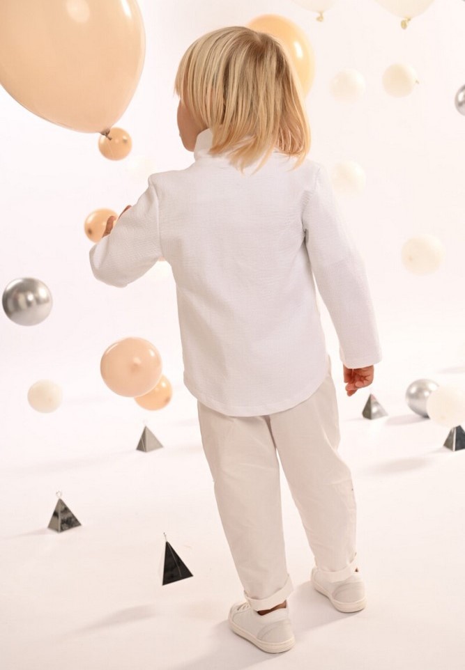 Ένα σύνολο που συνδυάζει την άνεση με τη αισθητική. Αποτελείται από παντελόνι δίπιετο με έξτρα λοξή ζώνη από λευκή βαμβακερή καμπαρντίνα και βαμβακερό πουκάμισο σε off white απόχρωση με έναν πολύ ιδιαίτερο Μao γιακά. Η μακρυμάνικη ζακέτα με τον ντραπέ γιακά και το λοξό κούμπωμα από γκοφρέ διπλό βαμβακερό ύφασμα σε λευκή απόχρωση ολοκληρώνει το σύνολο, προσφέροντας έναν αέρα casual κομψότητας. Το styling ολοκληρώνεται με το υπέροχο ψάθινο καπέλο (ή τραγιάσκα κατά επιλογή).