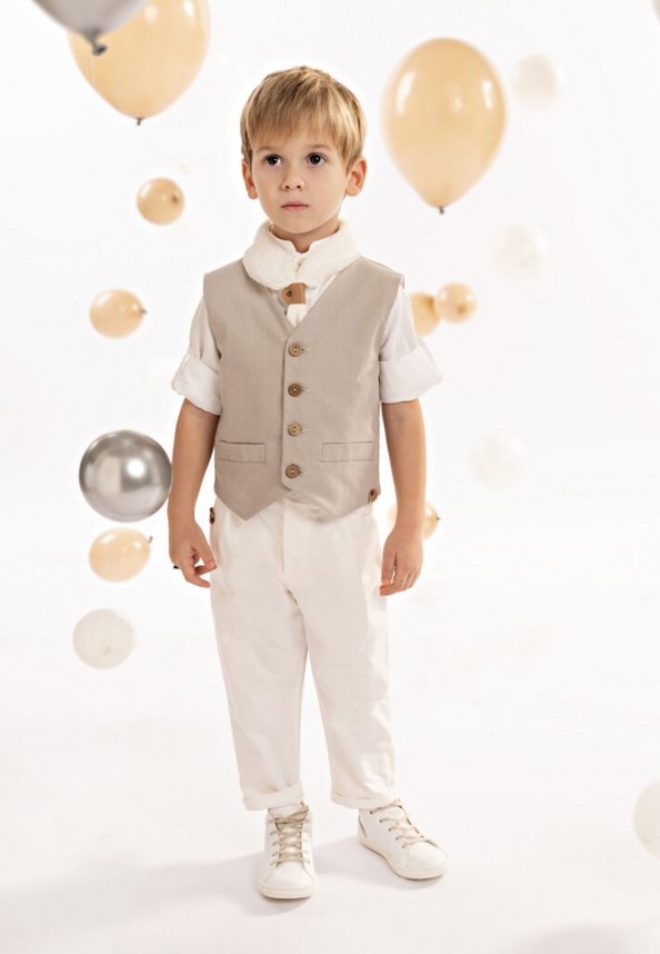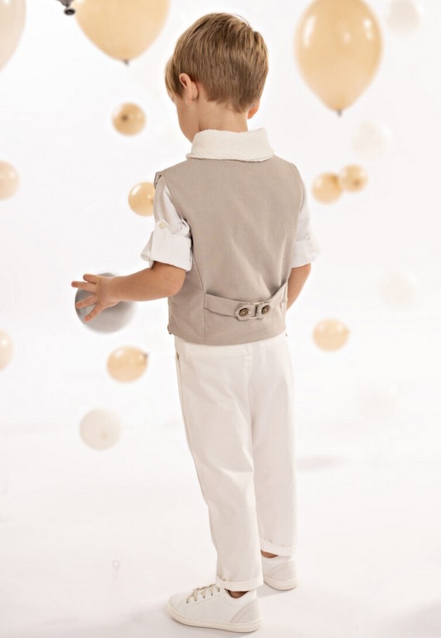 Λαδόπανα βάπτισης αγόρι Μ26 Μπεζ με Κουμπί