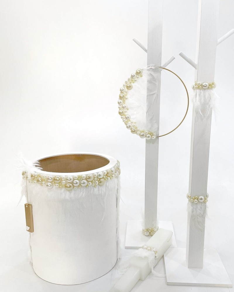Βαπτιστικό Σετ Feathers & Pearls με χρώματα λευκό K22-020