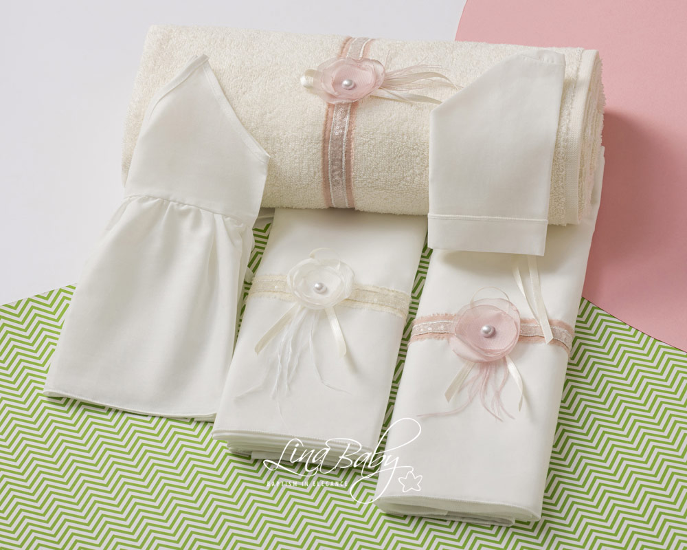 Βαπτιστικό Σετ Ψιψίνα με χρώματα λευκό ροζ K22-049