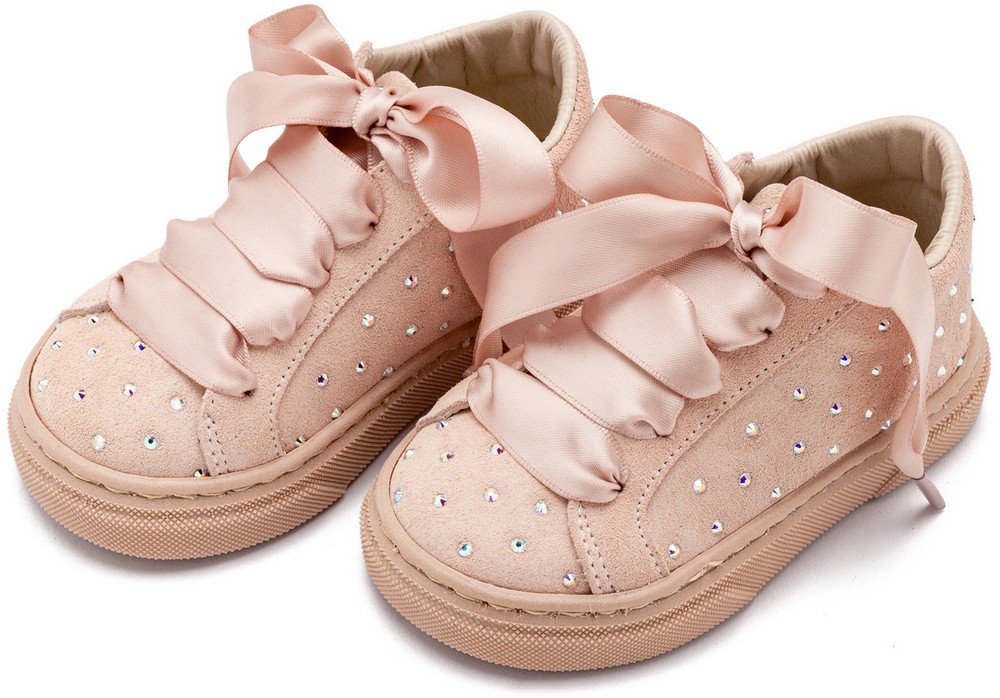 Δετό Σνίκερ από Suede Δέρμα Διακοσμημένο με Στρας Swarovski σε Νουντ Χρώμα