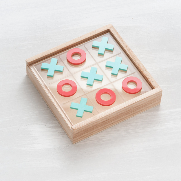 Plexiglass παιχνίδι τρίλιζα σε ξύλινο κουτάκι.Το ταμπλό είναι από plexiglass.Περιλαμβάνει 10 πούλια
