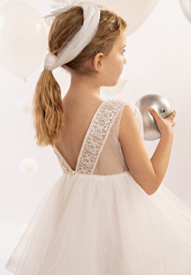 Λαδόπανα Βάπτιση κορίτσι Μ98 Σάπιο Μήλο Τούλι με Glitter-Εκρού
