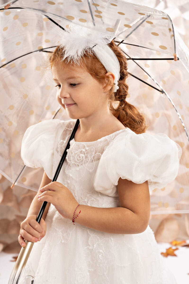 * Το φόρεμα συνοδεύεται με κορδέλα για τα μαλλιά με φιόγκο και πούπουλα.