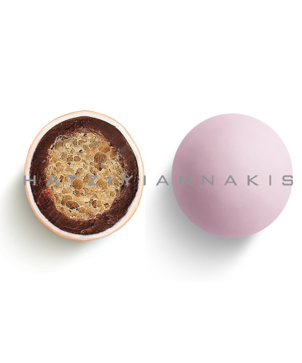Crispy, με τραγανό πυρήνα από δημητριακά και κρέμα κακάο με λεπτή επικάλυψη ζάχαρης, σε ροζ ματ χρώμα και γεύση bueno. Τεμάχια/700gr: 230τμχ