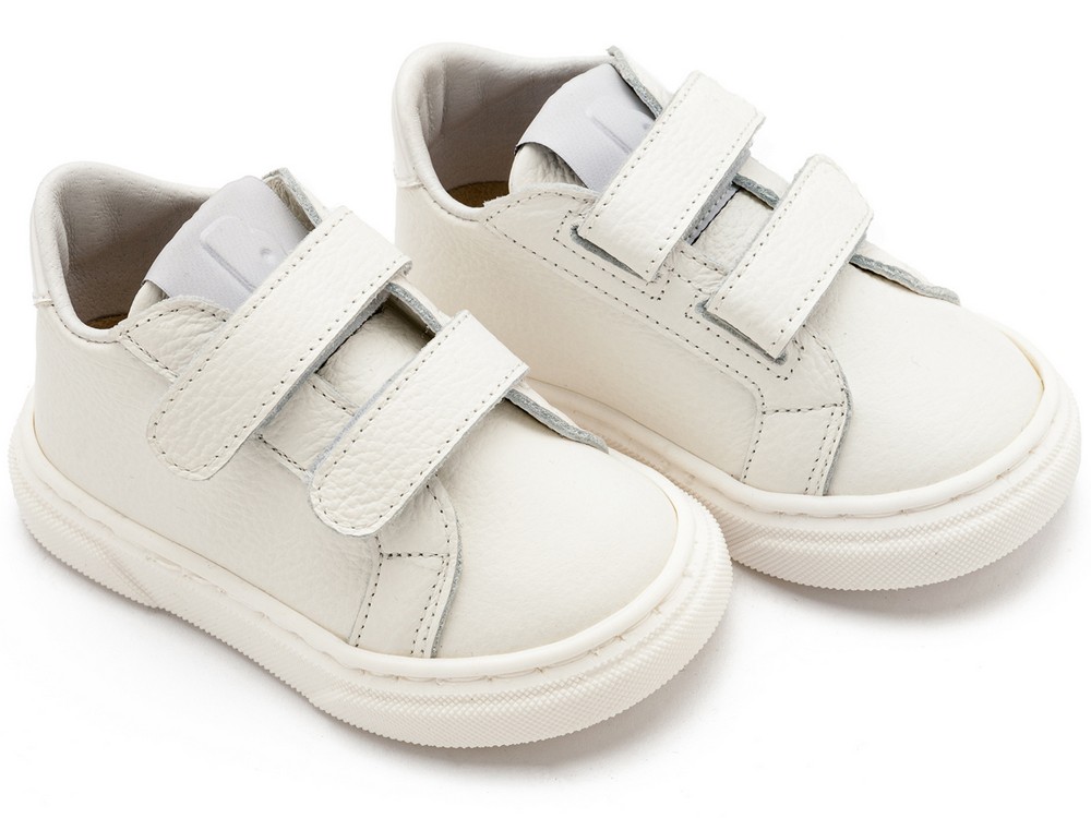 Μονόχρωμο Δερμάτινο Σνίκερ με Διπλή Μπαρέτα Χρατς σε Λευκό Χρώμα