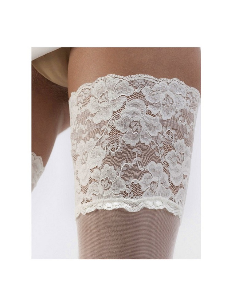 Beautiful stocking with an elegant look thanks to a lovely satin finish combined with a luxurious lace band. The lace and leg are the same colour (uni-colour).